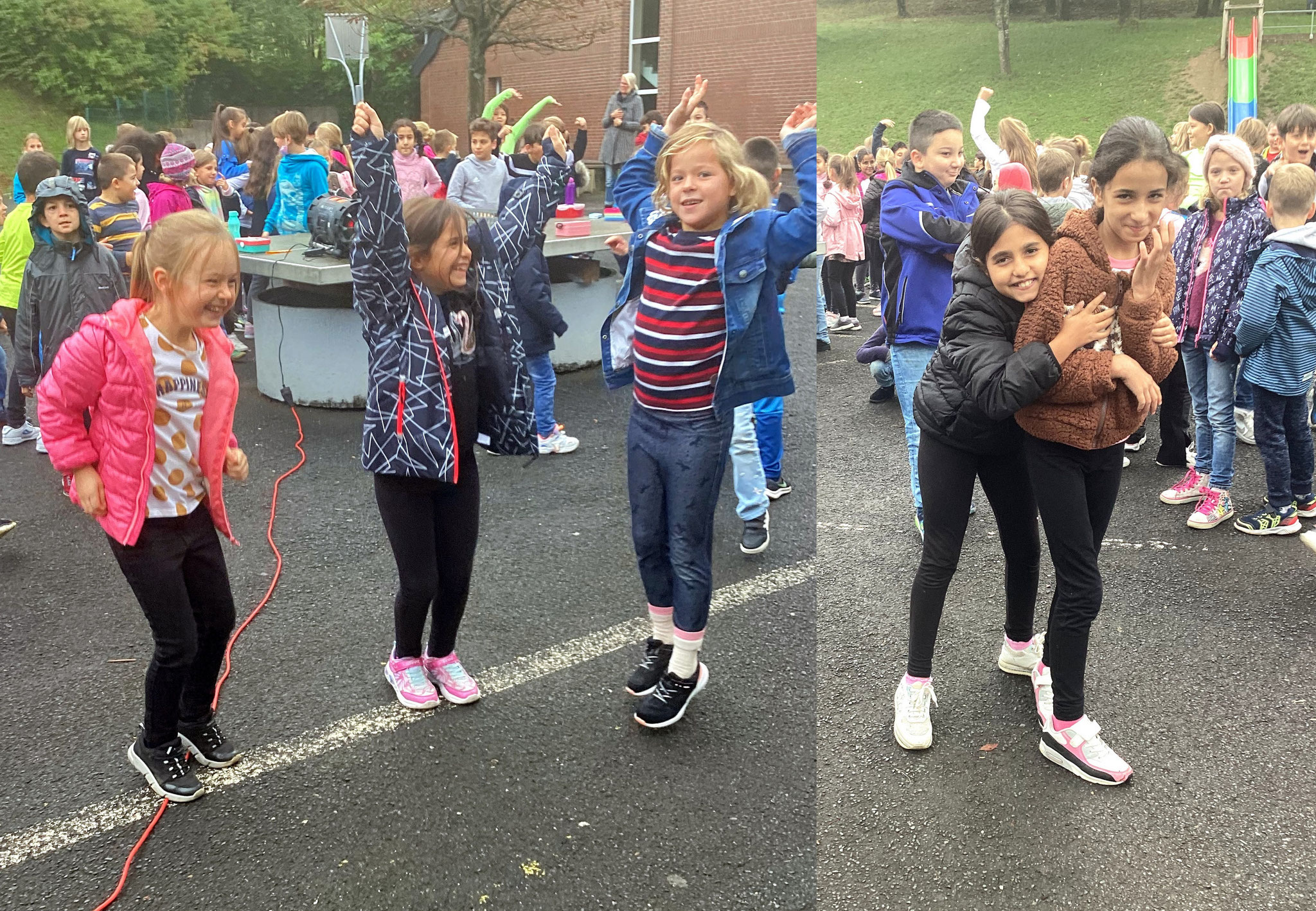 kamen sie ordentlich in Schwung. Im Anschluss daran präsentierten die Seilspringer*innen der Schulgemeinschaft ihr Können, die dann ebenso Gelegenheit hatte, die Sprungvarianten