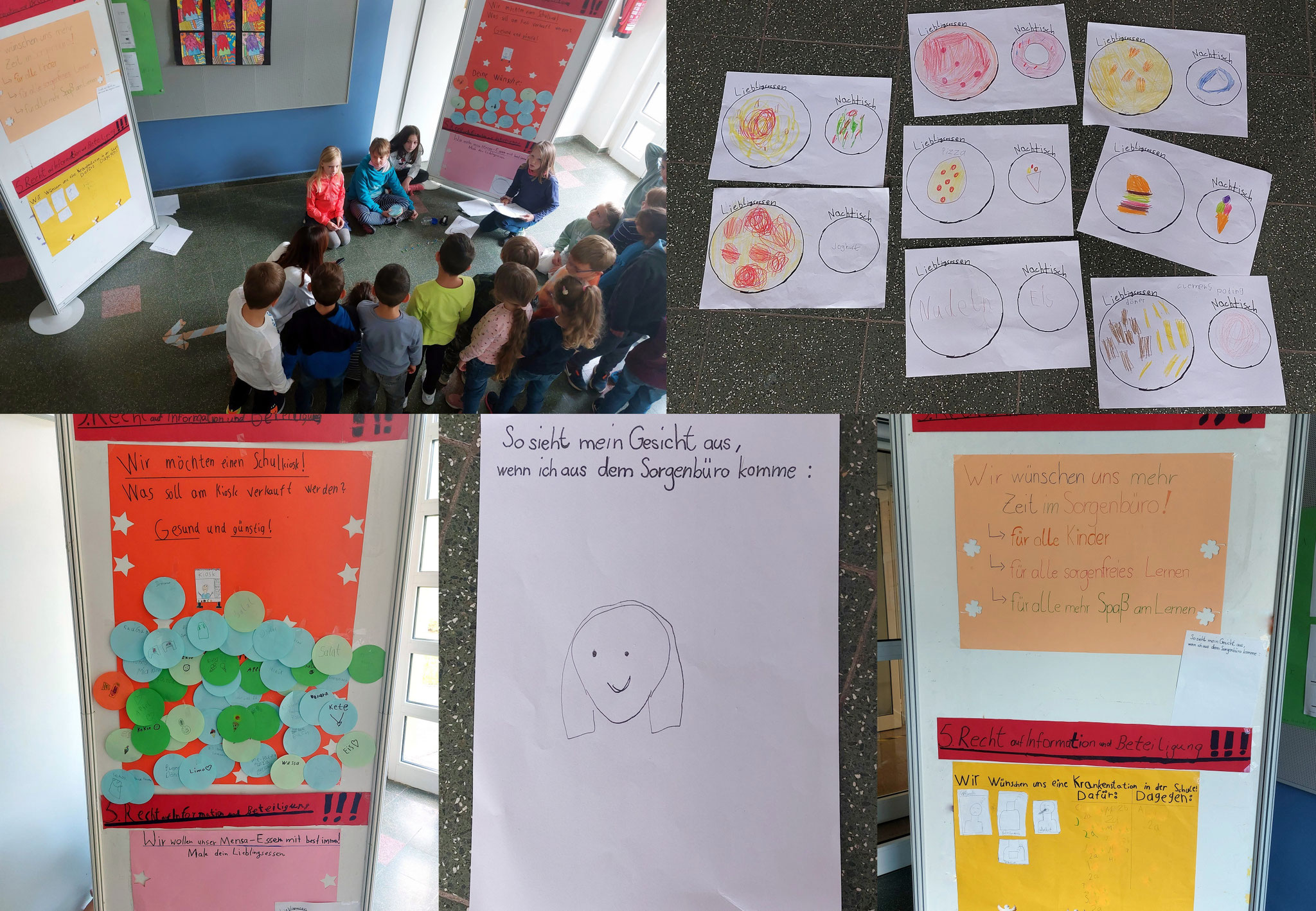 Gesundheit und eine saubere Umwelt. Zum Recht auf Information und Beteiligung wurde die Klasse 4b aktiv. Hier gab es Umfragen zu den Themen „Sorgenbüro“, „Mensaessen“ und „Schulkiosk“ sowie eine