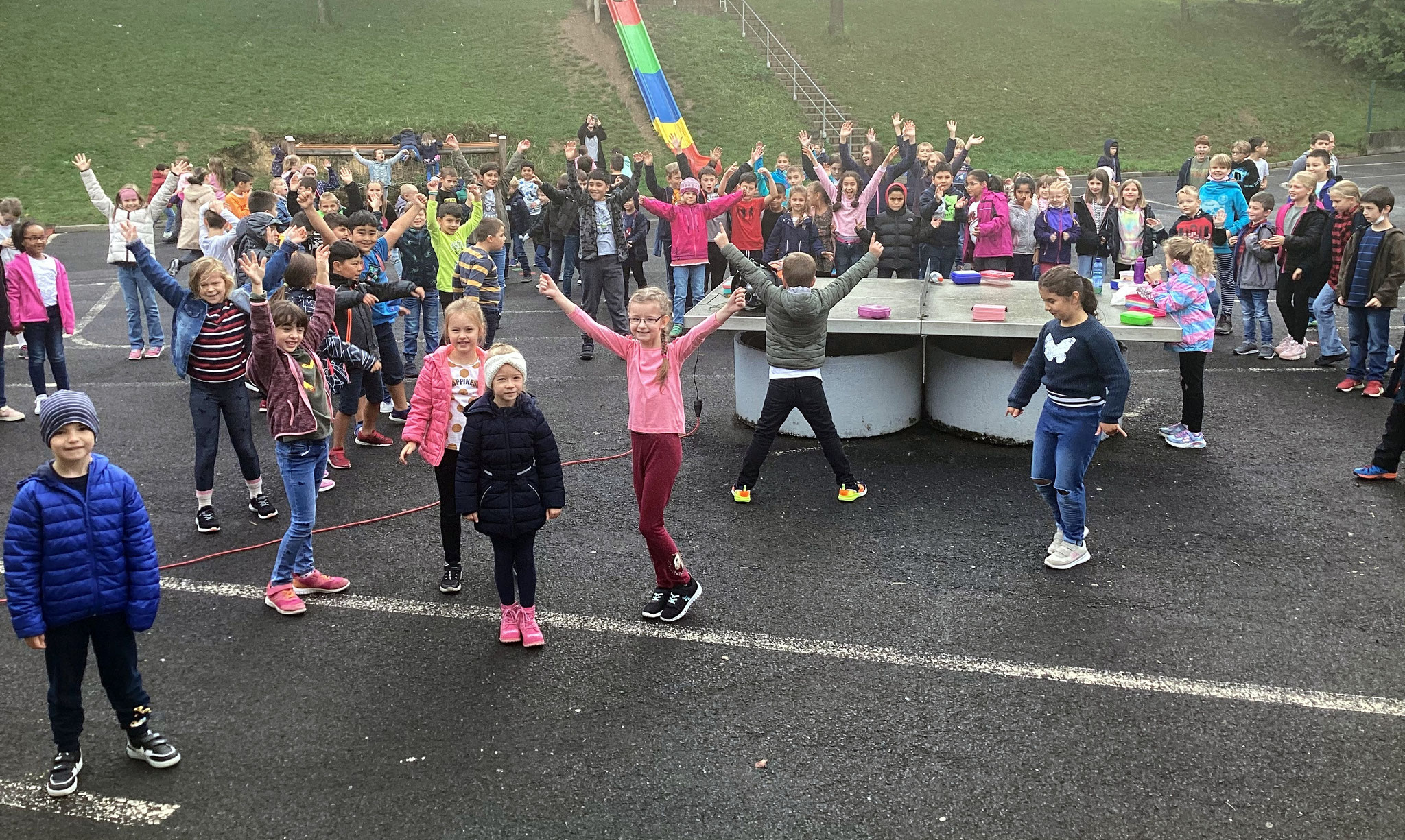 das Comeback des Sportfestes bereits am frühen Morgen beim Partytanz zu „Absolutely everybody“ an. Angeleitet von der 3b tanzten alle Kinder synchron mit, da viele Klassen bereits im Vorfeld