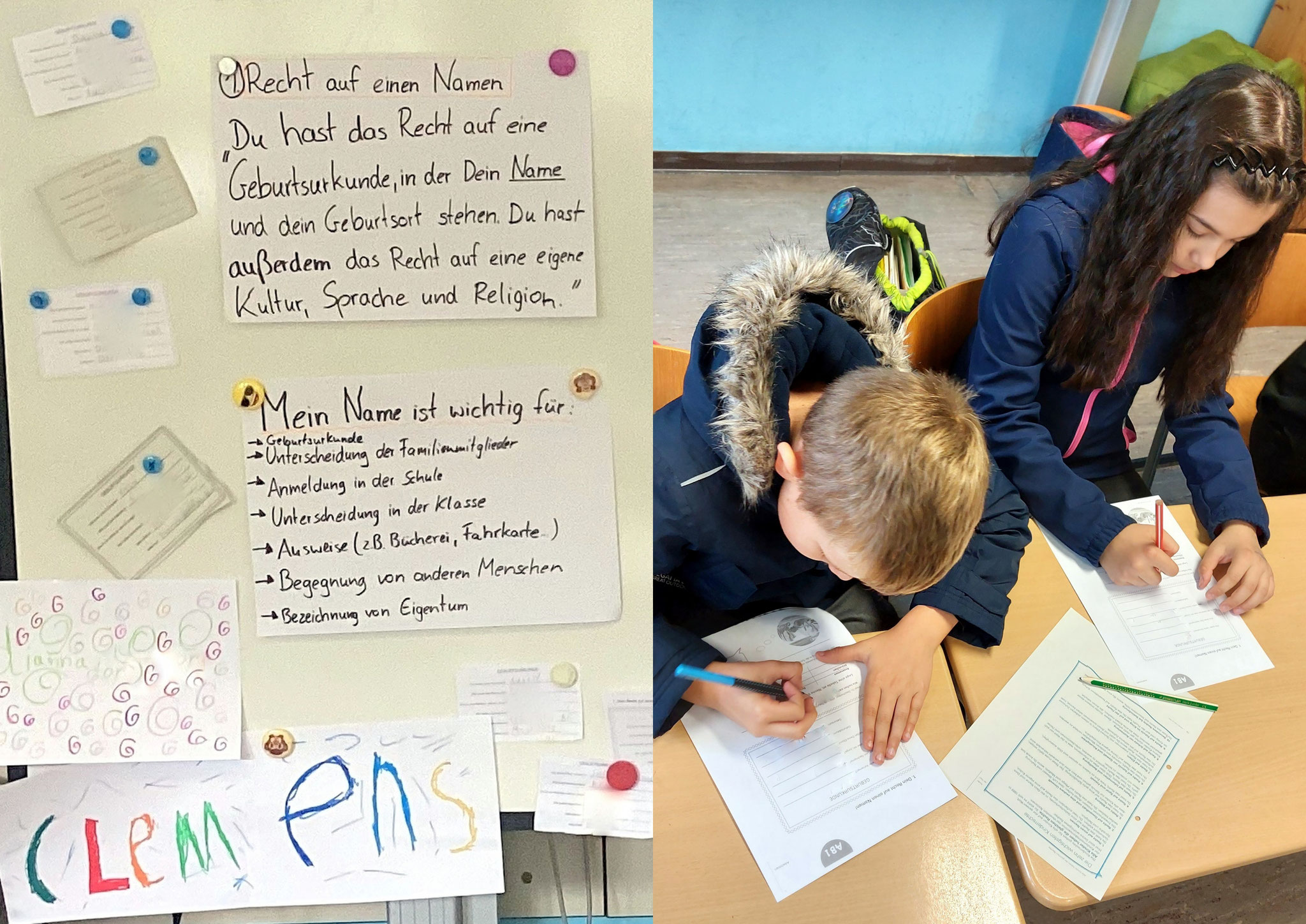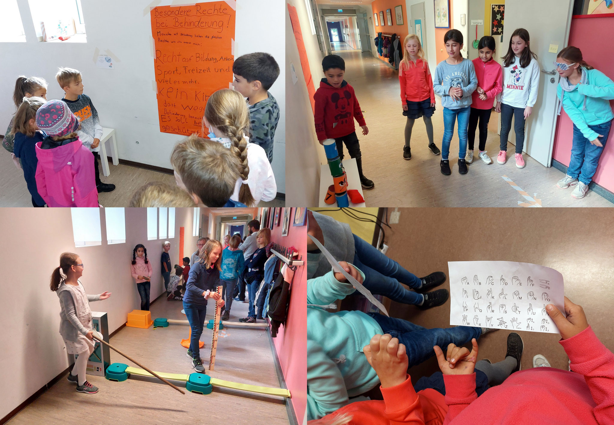 machen. Dass Kinder besondere Rechte bei Behinderung haben, demonstrierte die Klasse 3a eindrucksvoll durch drei verschiedene Angebote. In der Klasse 3b waren Expert*innen zum Recht auf Bildung