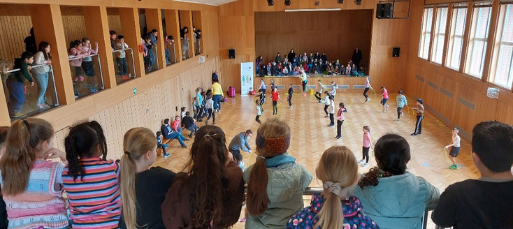 Veranstaltung ein Seil und verließen motiviert die Festhalle. So wirkt dieses Präventionsprojekt bei den Kindern sicherlich nach – in der Schule und zu Hause.