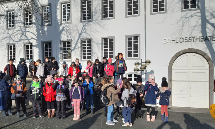 Am Freitag, 20.01.2023 ging es für die Klassen 2a und 2b der Oberwaldschule – Grundschule – Selters auf große Fahrt. Mit dem Bus fuhren sie nach Neuwied, um im dortigen Schlosstheater das Stück „Pettersson und Findus“ anzusehen. „So lange bin ich noch nie mit dem Bus gefahren!“, hörte man viele aufgeregte Kinderstimmen auf dem Weg an den Rhein. Angekommen in Neuwied ging es für die Klassen in einen Seitenflügel des Neuwieder Schlosses, ins „Junge Schlosstheater“, einer eigenen Spielstätte extra für Kinder und Jugendliche. Vor einem beeindruckenden Bühnenbild erlebten die Mädchen und Jungen die tollen Darsteller von Pettersson, dem alten, freundlichen Mann, und Findus, seinem Kater und besten Freund, sowie dem Hahn Caruso. Die Kinder fühlten sich mitten im Geschehen, freuten sich und lachten herzhaft. Als Pettersson Findus suchte, gaben die jungen Zuschauerinnen und Zuschauer viele Tipps. Am Ende bejubelten sie mit lautem Beifall das sehenswerte Theaterstück, bevor es mit dem Bus auf die „lange Fahrt“ zurück nach Selters ging.