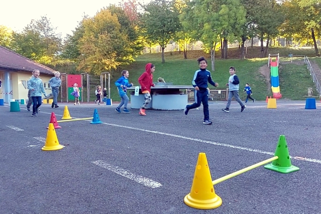 Für Abwechslung während des Laufens sorgten neben dem Plaudern mit den Laufpartner*innen verschiedene Laufaufgaben. So konnten die jungen Sportler*innen über Hindernisse laufen, Buchstaben
